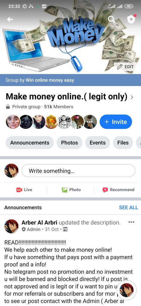 Join us in fb group:Make money online(legit only) link: https://www.facebook.com/groups/132302793824883/?ref=share